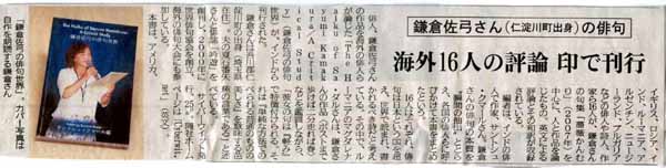 Review of The Haiku of Sayumi Kamakura: A Critical Study appeared in "The Daily News Paper of Kochi" Japan, issue 01 Nov. 2010 |